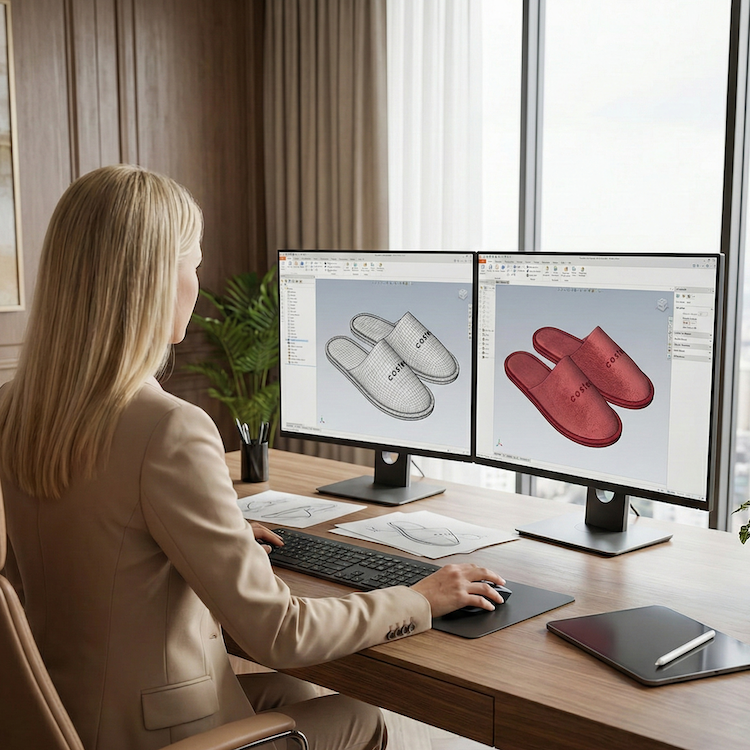 We started with a detailed discovery to understand how the red slippers would be used in real life: when they’re presented to guests, where they’re placed in-room, how frequently they’re replaced and the quantities needed across suites and room categories.