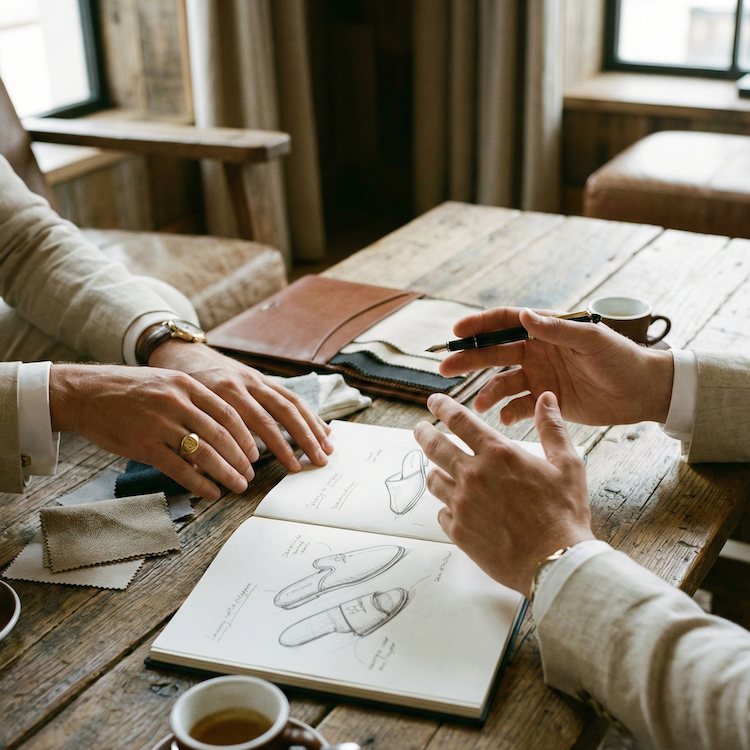 We discussed the desired look & feel (bold, elegant, unmistakably Costes), reviewed brand guidelines, and aligned on key decisions like slipper sizing, sole thickness, comfort level, fabric and lining choices.