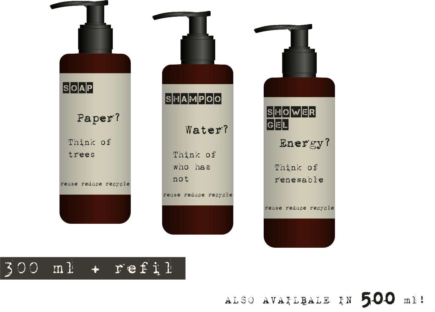 Bouteille en plastique 100% RECYCLÉE de couleur ambre. Existe en format 35 ml et 300 ml, mais aussi en 500 ml.